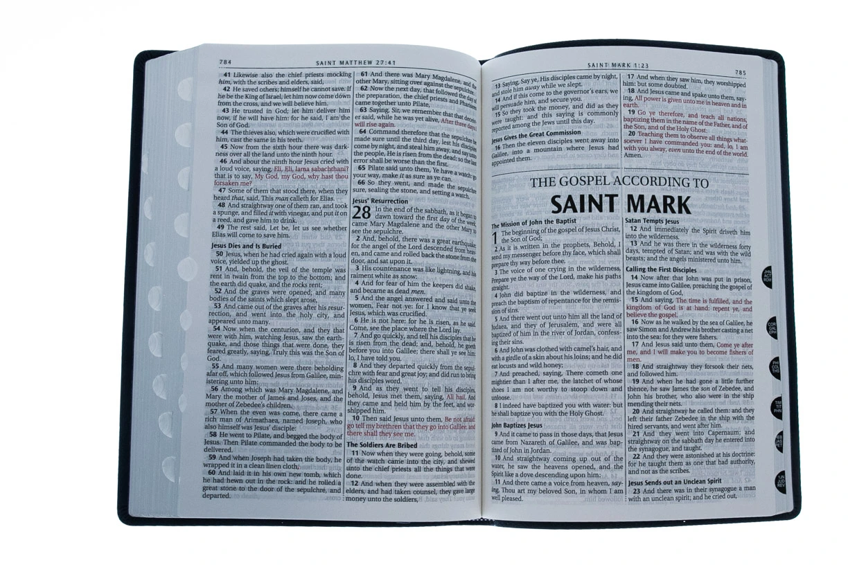 Christian Art Gifts KJV Blue Faux Leather Large Print Thinline Bible With Thumb Index