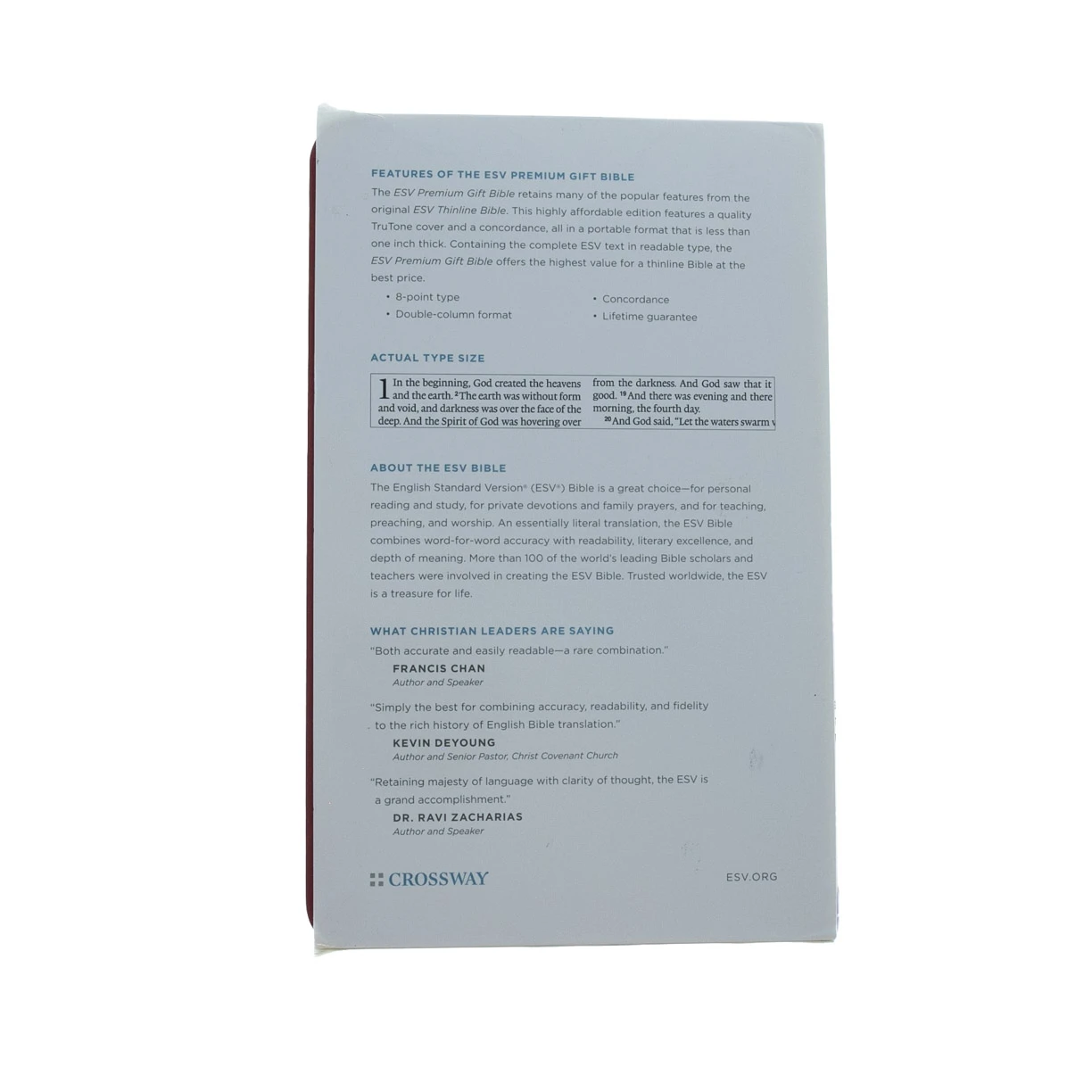Containing the complete ESV text in readable type, the ESV Premium Gift Bible offers the highest value for a thinline Bible at the best price. This