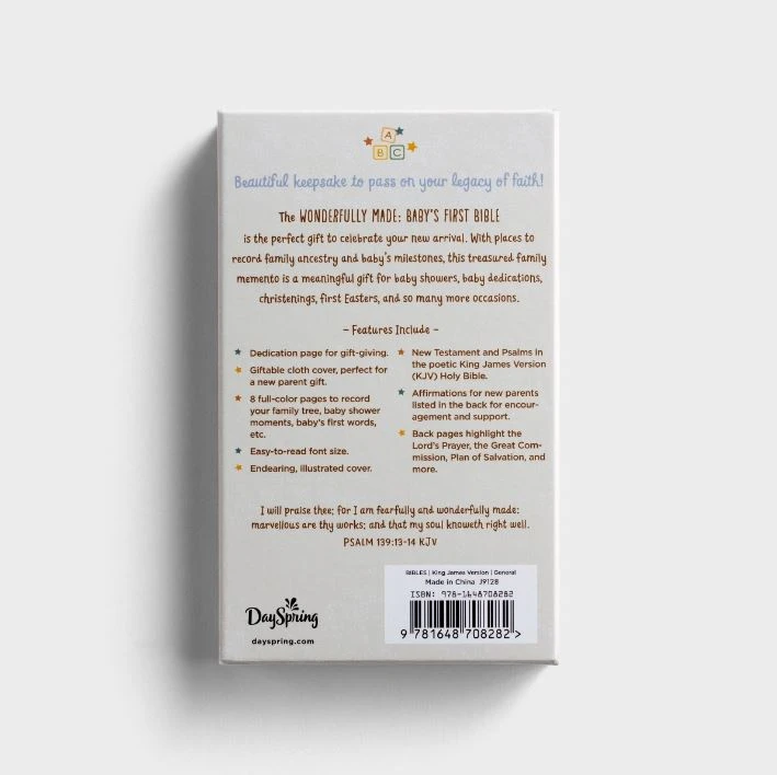 Celebrate your baby boy’s arrival or gift a new parent with God’s Word The endearing illustrated cover and page design make this Bible a great keepsake