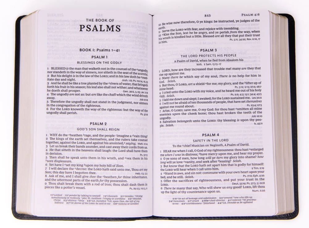 This KJV Bible contains a unique and stunning layout for reading and exploring God’s Word with ease. With a single-column, line-matched format in large