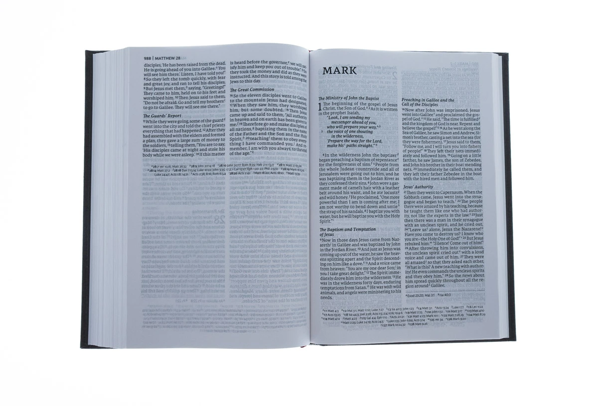 The NET Bible, Large Print Thinline Reference Edition, is both portable (under 1-inch thick) and readable. Bible text appears in a beautifully-designed line-matched double-column format, with extensive cross-references conveniently located at the bottom of the page.Featuring the New English Translation—the newest translation of the biblical languages into English, based on the most up-to-date manuscript discoveries and research—this cross-reference edition of the NET Bible is ideal for students, teachers, and lay-readers alike. Features include:Complete text of the transparent and accurate New English TranslationExtensive set of cross-references help reveal the connections within ScriptureAbbreviated set of NET translators’ notes (complete set of more than 60,000 notes freely available online at netbible.org)Durable Smyth-sewn binding lays flat in your hand or on your deskFull-color mapsThomas Nelson’s NET Comfort Print 10-point typeface