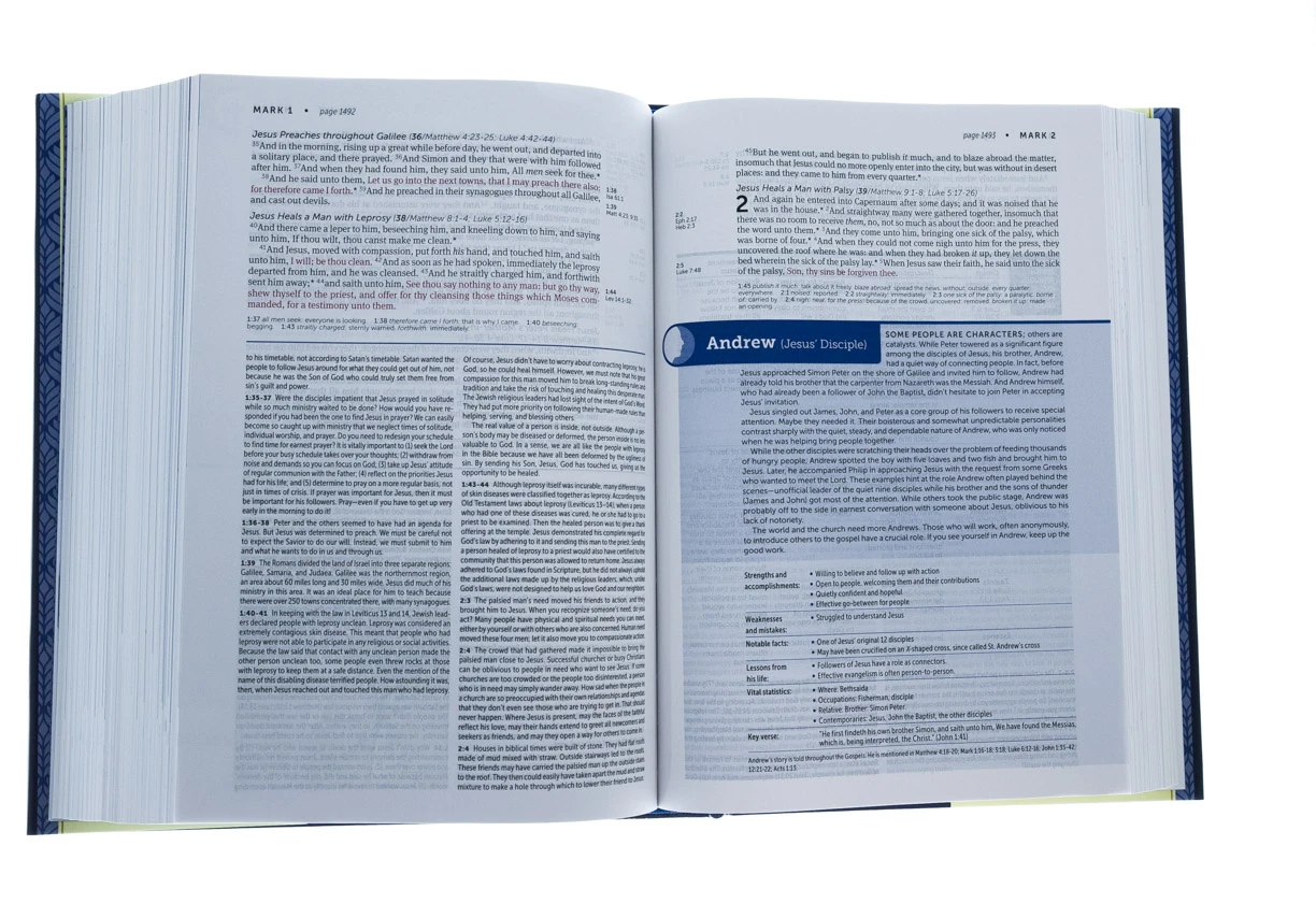 The Life Application Study Bible is today’s #1 selling study Bible because it helps people see how the Scriptures are relevant to today’s issues. This edition of the Life Application Study Bible lets you enjoy the best-selling Life Application features with the time-honored King James Version.Special Features: Thousands of Life Application notes help explain God’s Word and challenge readers to apply the truth of Scripture to life Personality profiles highlight over 100 important Bible characters Book introductions provide vital statistics, overview, and timeline to help readers understand the message of each book 200 thumbnail maps highlight important Bible places and events 260 charts help explain difficult concepts and relationships Cross-references Harmony of the Gospels built right into the text of Matthew, Mark, Luke, and John Dictionary/concordance Words of Christ in red Daily reading plan Genuine leather and bonded leather editions include gold-page edges and ribbon marker